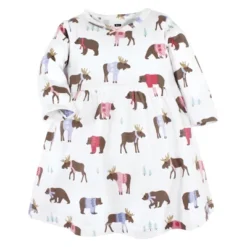 Hudson Baby Infant And Toddler Girl Cotton Dresses, Pink Moose Bear