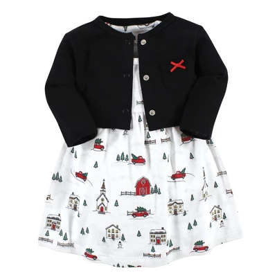 Hudson Baby dress and cardigan set is the cutest fashion outfit for your baby and toddler girl. Both dress and cardigan are made from super soft 100% interlock cotton. Our dress will keep your little feeling free and cool while the cardigan offers long sleeves for added warmth when needed. Our cardigan comes with snap closure for easy on and off. Hudson Baby offers the widest assortment in Christmas apparel, Christmas outfits and sweaters, Christmas pajamas, Christmas blankets and throw blankets, and Christmas socks. Our vast product assortment for babies, toddlers and kids make for great stocking stuffers for the whole family.