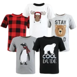 Hudson Baby t-shirts are great everyday tops for your little ones. Featuring fun prints and patterns, our t-shirts are made with comfortable, soft cotton poly fabric that feels wonderful on children’s skin. Our sets include five t-shirts so you can mix and match with your child’s wardrobe for fun everyday outfits.