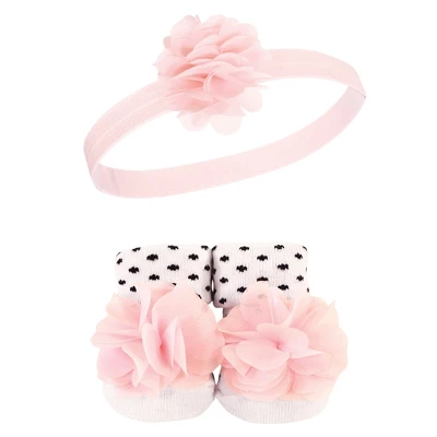 Hudson Baby socks and headband giftset is the perfect accessory set for your little one. Our giftset includes coordinating headbands and socks so your baby is looking fashionable from head to toe. Our headbands and socks are great for dressing up or everyday wear. Our giftset comes in an adorable gift box with ribbon and makes a terrific baby shower gift.