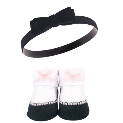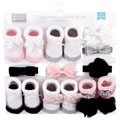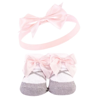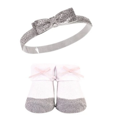 Hudson Baby Girl Headband And Socks Giftset, Silver Ballet, One Size