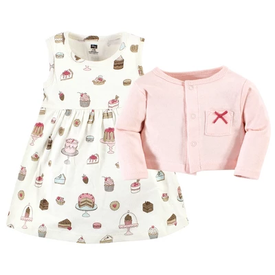Hudson Baby dress and cardigan set is the cutest fashion outfit for your baby and toddler girl. Both dress and cardigan are made from super soft 100% interlock cotton. Our dress will keep your little feeling free and cool while the cardigan offers long sleeves for added warmth when needed. Our cardigan comes with snap closure for easy on and off.