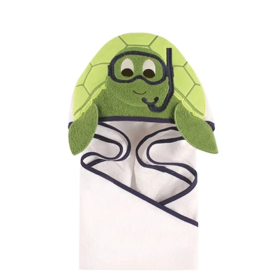 Hudson Baby Infant Boy Cotton Animal Face Hooded Towel, Scuba Turtle, One Size