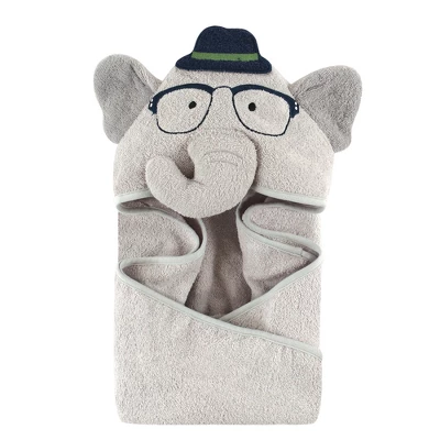 Hudson Baby Infant Boy Cotton Animal Face Hooded Towel, Smart Elephant, One Size