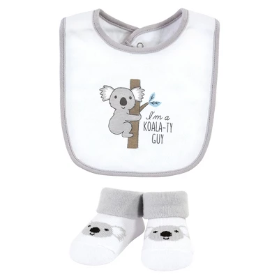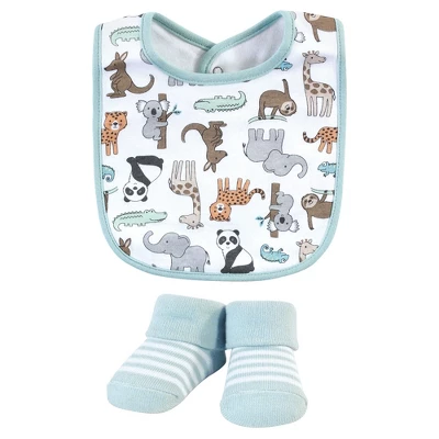 Hudson Baby bib and socks set are an adorable accessory set for fashionable matching bibs and socks. Each set features fun, cute bibs and socks made with coordinating fun, stylish prints. Our accessory set is a great baby shower gift.