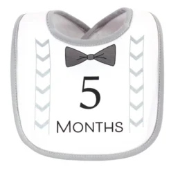 - Set of milestone bibs to celebrate your baby’s first year.