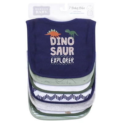 Hudson Baby interlock cotton drooler bibs are fashionable baby bibs made with two layers of soft, gentle cotton. Our bibs feature cute prints and embroideries and are great fashion bibs over baby’s clothes to keep their outfits clean. Our bibs are great for drooling, feeding and more. Hudson Baby Infant Boy Cotton Bibs, Dinosaur Explorer is a great baby essentials set for your little one.