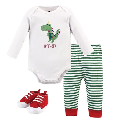 Hudson Baby bodysuit, pant, and shoes are an adorable, fashionable outfit to dress your baby for a day out. Your little one will be the most stylish, comfortable baby in the neighborhood with our bodysuit and pant and matching pair of shoes. Hudson Baby Infant Boy Cotton Bodysuit, Pant and Shoe 3pc Set, Tree Rex is a great baby essentials set for your little one. Hudson Baby offers the widest assortment in Christmas apparel, Christmas outfits and sweaters, Christmas pajamas, Christmas blankets and throw blankets, and Christmas socks. Our vast product assortment for babies, toddlers and kids make for great stocking stuffers for the whole family.
