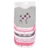 - Set includes coordinating burp cloths. Measures 14×20 inches.