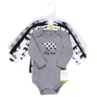 Hudson baby long-sleeve bodysuits are an essential part of baby’s wardrobe. Our bodysuits feature adorable prints, embroideries, stripes and solids and provide a comfortable base layer that’s great for pairing with pants, shorts, or even wearing under outfits. Our bodysuits are comfortable and cozy for all-day, everyday wear for your little one.