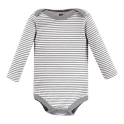 Hudson Baby long-sleeve bodysuits are an essential part of baby’s wardrobe. Our bodysuits feature adorable prints, embroideries, stripes and solids and provide a comfortable base layer that’s great for pairing with pants, shorts, or even wearing under outfits. Our bodysuits are comfortable and cozy for all-day, everyday wear for your little one.