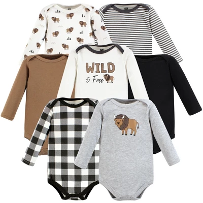 Hudson Baby Infant Boy Cotton Long-Sleeve Bodysuits, Wild Buffalo 7-Pack