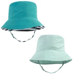 Hudson Baby sun protection hat protects your baby and toddler’s head, neck, and eyes while playing in the sun and enjoying the outdoors. The tie strap keep the hat secure on your little one’s head with the adjustable toggle allowing for a customizable fit! Our wicking liner is breathable for comfort and the UPF 50+ material dries quickly if it gets wet to support babys active play. Parents love how easy it is to pack for on-the-go activities. Available in a wide variety of prints and patterns.