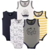 Hudson Baby bodysuits are an essential part of baby’s wardrobe. Our bodysuits feature adorable prints, embroideries, stripes and solids and provide a comfortable base layer that is great for pairing with pants, shorts, or even wearing under outfits. Our bodysuits are comfortable and cozy for all-day, everyday wear for your little one.