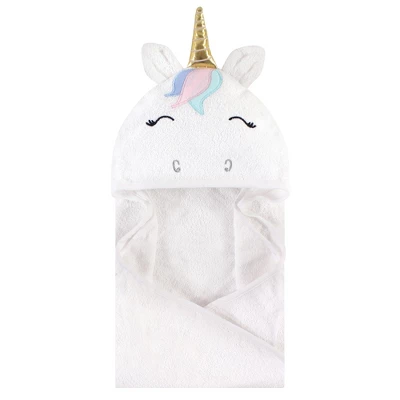 Hudson Baby Infant Girl Cotton Animal Face Hooded Towel, Multicolor Unicorn, One Size