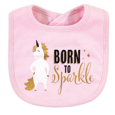 Hudson Baby Infant Girl Cotton Bib And Headband Set 5pk, Sparkle Unicorn, One Size