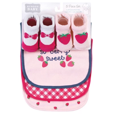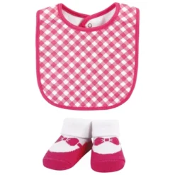 Hudson Baby bib and socks set are an adorable accessory set for fashionable matching bibs and socks. Each set features fun, cute bibs and socks made with coordinating fun, stylish prints. Our accessory set is a great baby shower gift.