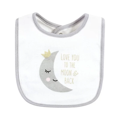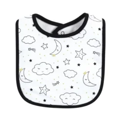 Hudson Baby interlock cotton drooler bibs are fashionable baby bibs made with two layers of soft, gentle cotton. Our bibs feature cute prints and embroideries and are great fashion bibs over baby’s clothes to keep their outfits clean. Our bibs are great for drooling, feeding and more.