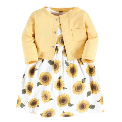 Hudson Baby Infant Girl Cotton Dress And Cardigan Set, Sunflower
