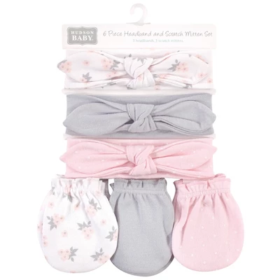 Hudson Baby headband and scratch mitten set is a perfect accessory set for your little girl. Each set comes with three headbands and three scratch mittens. Our headbands are a fun headwrap for your baby girl to look stylish with our adorable prints. Our scratch mittens are made with super soft cotton fabric and an elastic band around the wrist so the mittens stay on and protect your little one’s face and body from any accidental scratches. Hudson Baby Infant Girl Cotton Headband and Scratch Mitten 6pc Set, Bows, 0-6 Months is a great baby essentials set for your little one.
