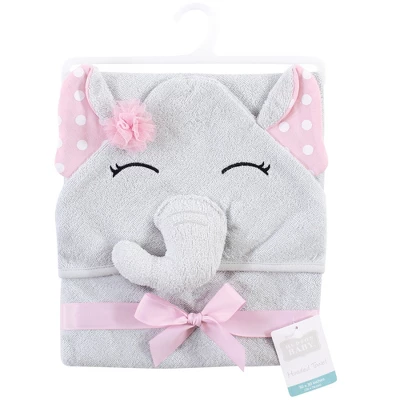 Hudson Baby Infant Girl Cotton Rich Animal Hooded Towel, White Dots Pretty Elephant, One Size