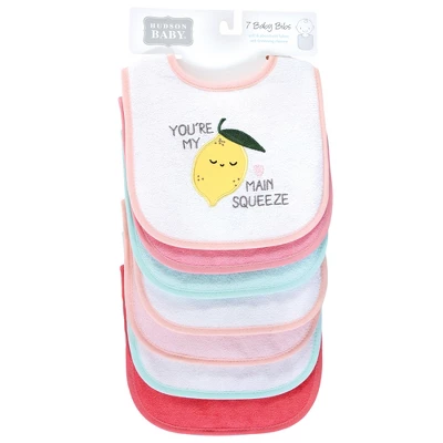 Hudson Baby drooler bibs are a great set of value bibs that absorb your baby’s drools and spills. Our drooler bibs feature adorable sayings and embroideries on every bib while also having an absorbent, fiber filled inner to keep your little one’s clothes clean. Made of cotton blend knit terry, our bibs are absorbent for the everyday mishaps you are bound to experience.