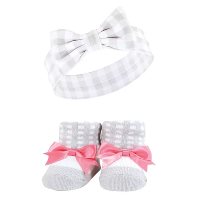 Hudson Baby Infant Girl Headband And Socks Giftset, Pink Charcoal, One Size