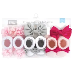 Hudson Baby socks and headband giftset is the perfect accessory set for your little one. Our giftset includes coordinating headbands and socks so your baby is looking fashionable from head to toe. Our headbands and socks are great for dressing up or everyday wear. Our giftset is packaged very nicely and makes a terrific baby shower gift.