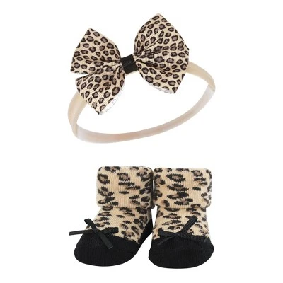 Hudson Baby Infant Girl Headband And Socks Giftset, Red Leopard, One Size