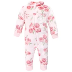 Hudson Baby Infant Girl Plush Jumpsuits, Blush Rose
