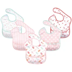 Hudson Baby waterproof bibs are a perfect solution for mess free mealtimes. These bibs have a crumb catching pocket to catch spills and crumbs. Polyester fabric can easily be wiped clean after use, or thrown in the washing machine. Hook and loop closure around the neck are easy to get on and off of baby during meal time. Hudson Baby Infant Girl Waterproof Polyester Bibs 5pk, Ice Cream is a great baby essentials set for your little one.