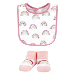 Hudson Baby Infant Girls Cotton Bib And Sock Set, Modern Rainbow, One Size