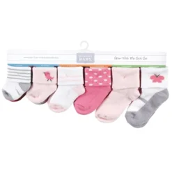 Hudson Baby grow with me socks are ideal baby socks for everyday wear with cotton-rich fabric that are soft and comfortable. Our bundle of socks include socks for when your little one is 0-6 months, 6-12 months and 12-24 months. Our stretchable design makes for proper fit and no fuss dressing. Made with soft, cushy fabric, our socks are a great addition to your little one’s outfit.