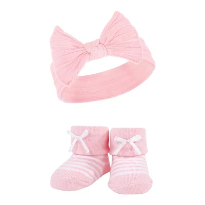 Hudson Baby Infant Girls Headband And Socks Giftset, Pink Blue, One Size