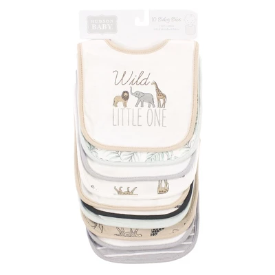 Hudson Baby interlock cotton drooler bibs are fashionable baby bibs made with two layers of soft, gentle cotton. Our bibs feature cute prints and embroideries and are great fashion bibs over baby’s clothes to keep their outfits clean. Our bibs are great for drooling, feeding and more. Hudson Baby Infant Unisex Cotton Bibs, Modern Neutral Safari is a great baby essentials set for your little one.