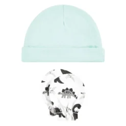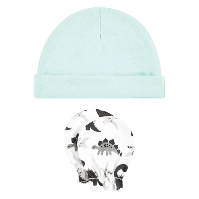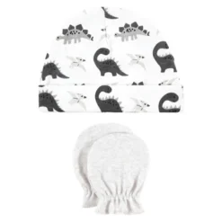 Hudson Baby Unisex Baby Cotton Cap And Scratch Mitten Set, Neutral Dino, 0-6 Months