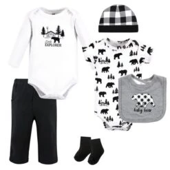 Hudson Baby Unisex Baby Cotton Layette Set, Baby Bear Gray Black