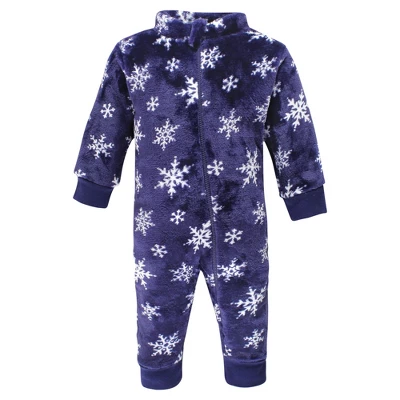 Hudson Baby Unisex Baby Plush Jumpsuits, Navy Snowflake