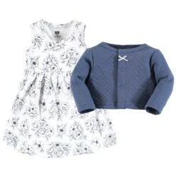 Hudson Baby Infant And Toddler Girl Quilted Cardigan And Dress, Blue Toile
