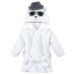 Hudson Baby Infant Boy 2Pc Plush Animal Face Bathrobe, Triceratops Handsome Bear, 0-9 Months