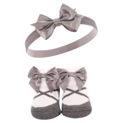 Hudson Baby Girl Headband And Socks Giftset, Black Ballet, One Size